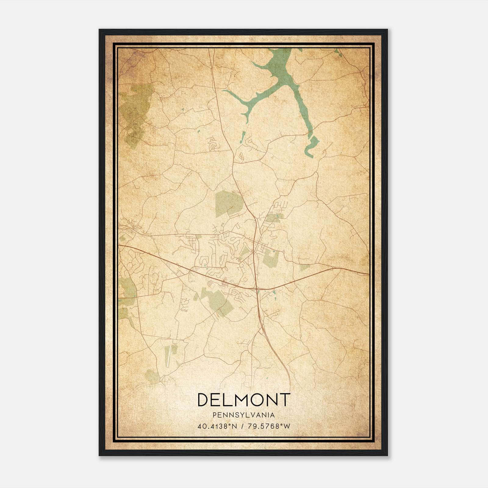 Vintage Delmont Pennsylvania Map Poster, Delmont PA City Road Wall