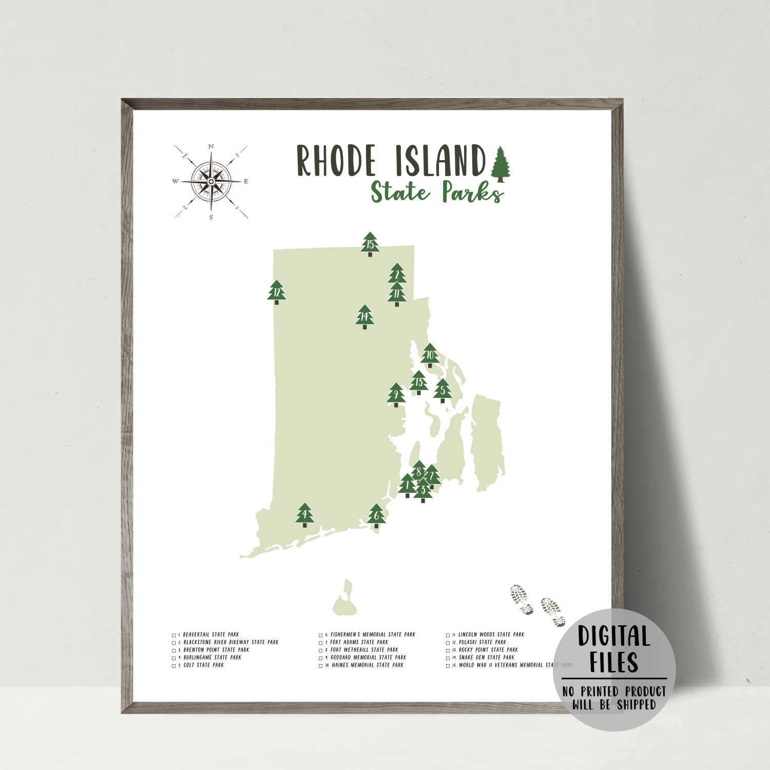 Rhode Island State Parks Map | Rhode Island Map Print | Gift For