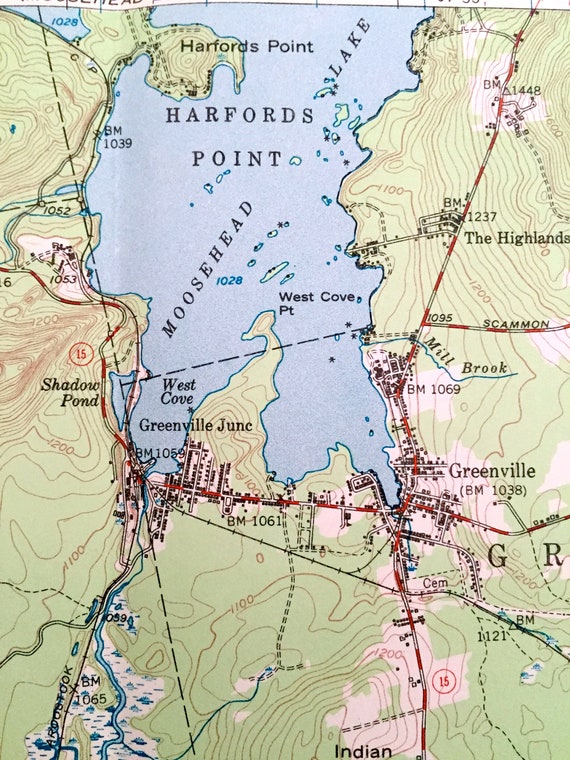 Antique Greenville, Maine 1951 US Geological Survey Topographic